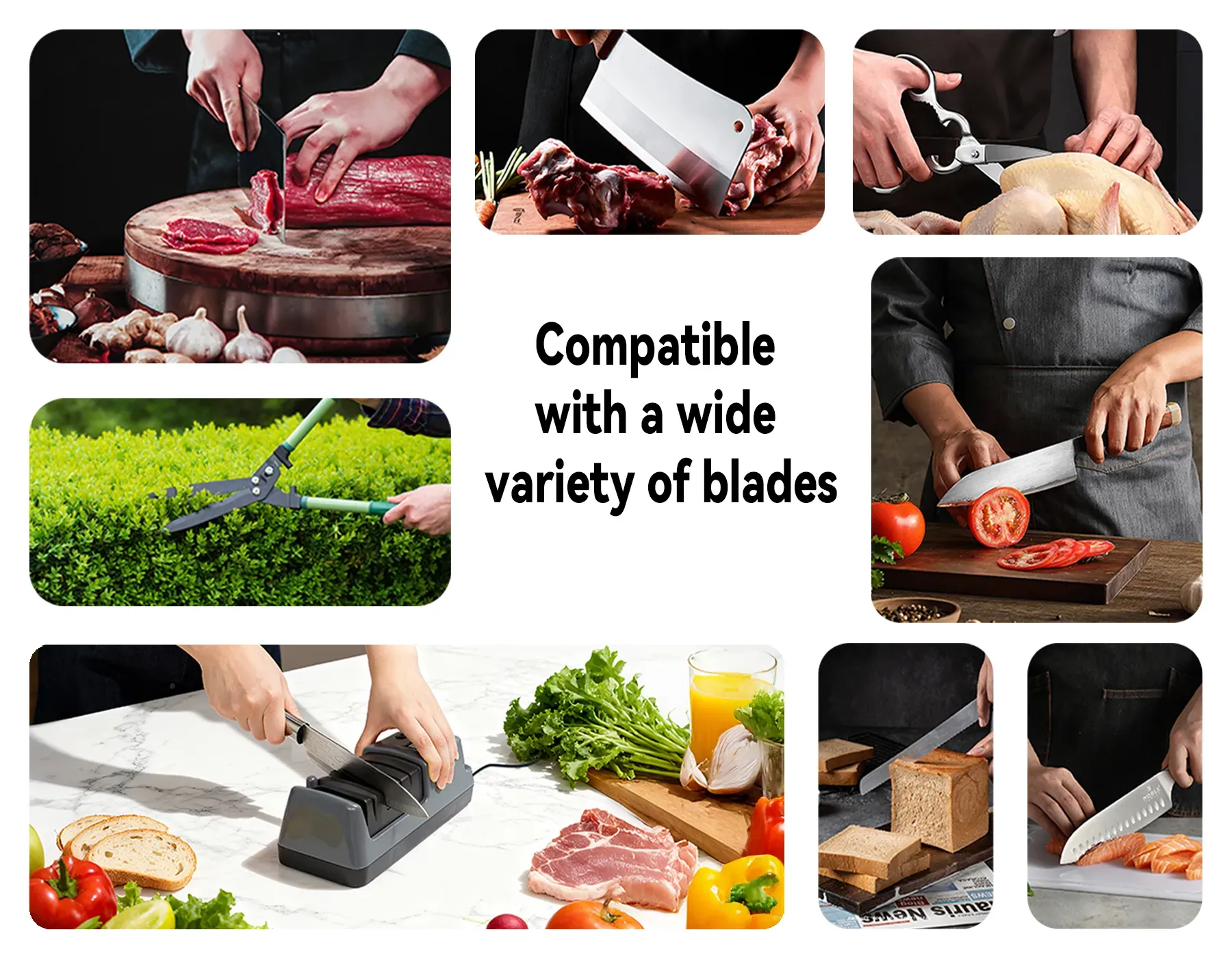 Compared to traditional manual sharpening, the electric sharpener is faster, easier, and more precise. Blades, scissors, and axes are quickly restored to sharpness without repeated effort. Enjoy smoother, safer cutting while saving time and energy, making kitchen, garden, and DIY tasks much more efficient.